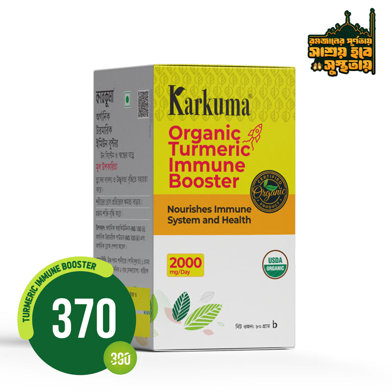 কারকুমা অর্গানিক টারমারিক ইমিউন বুস্টার একটি ফাংশনাল ফুড প্রোডাক্ট, যা ইমিউন সিস্টেমের কার্যকারিতা বৃদ্ধির লক্ষ্যে বিশেষভাবে তৈরী করা হয়েছে । এতে ব্যবহৃত অর্গানিক কারকিউমিন একটি শক্তিশালী এন্টি-অক্সিডেন্ট যা শরীরে ইনফ্লামেশন বা প্রদাহ কমাতে সহায়তা করে । এছাড়াও এটি পাকস্থলীর ক্ষতিকারক এনজাইম কমাতে ও মিউকাস নিঃসরণ বাড়াতে সহায়তা করে; পেটের সুস্বাস্থ্য বজায় রাখে ।