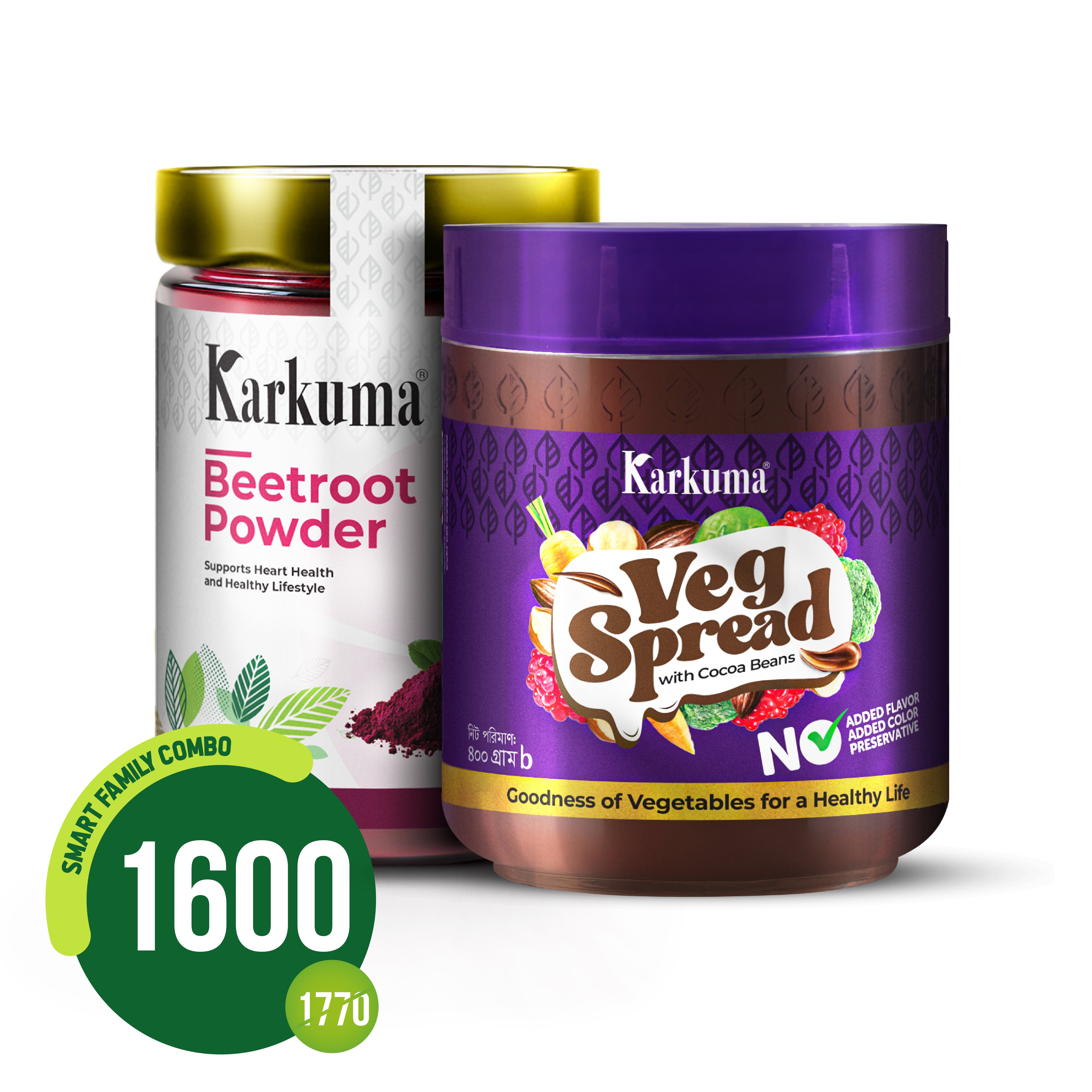 কারকুমা ভেজস্প্রেড একটি অনন্য এবং স্বাস্থ্যকর চকলেট স্প্রেড, যেখানে এক দারুণ মেলবন্ধন হয়েছে স্বাদের সাথে পুষ্টির। বাছাই করা সেরা সব উপাদান দিয়ে তৈরি এই স্প্রেডটিতে রয়েছে পালং শাক, ব্রকলি, গাজরসহ অন্যান্য ভেজিটেবলস; সাথে মালবেরি ফল, হ্যাজেলনাট ও কোকো বিনসের পুষ্টিকর মিশ্রণ। সব বয়সের মানুষের জন্য এটি একইসাথে পুষ্টিকর এবং মুখরোচক। কারকুমা ভেজস্প্রেড খেতে পারেন রুটি, টোস্ট বা প্যানকেকের সাথে, অথবা সরাসরিও উপভোগ করতে পারেন এর স্বাদ।