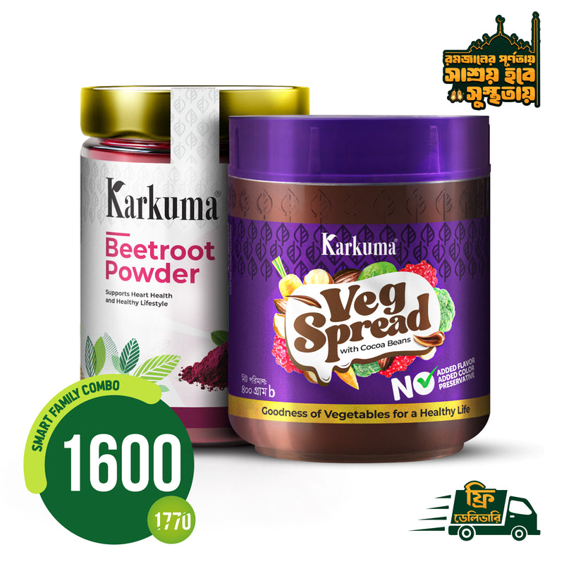 কারকুমা ভেজস্প্রেড একটি অনন্য এবং স্বাস্থ্যকর চকলেট স্প্রেড, যেখানে এক দারুণ মেলবন্ধন হয়েছে স্বাদের সাথে পুষ্টির। বাছাই করা সেরা সব উপাদান দিয়ে তৈরি এই স্প্রেডটিতে রয়েছে পালং শাক, ব্রকলি, গাজরসহ অন্যান্য ভেজিটেবলস; সাথে মালবেরি ফল, হ্যাজেলনাট ও কোকো বিনসের পুষ্টিকর মিশ্রণ। সব বয়সের মানুষের জন্য এটি একইসাথে পুষ্টিকর এবং মুখরোচক। কারকুমা ভেজস্প্রেড খেতে পারেন রুটি, টোস্ট বা প্যানকেকের সাথে, অথবা সরাসরিও উপভোগ করতে পারেন এর স্বাদ।